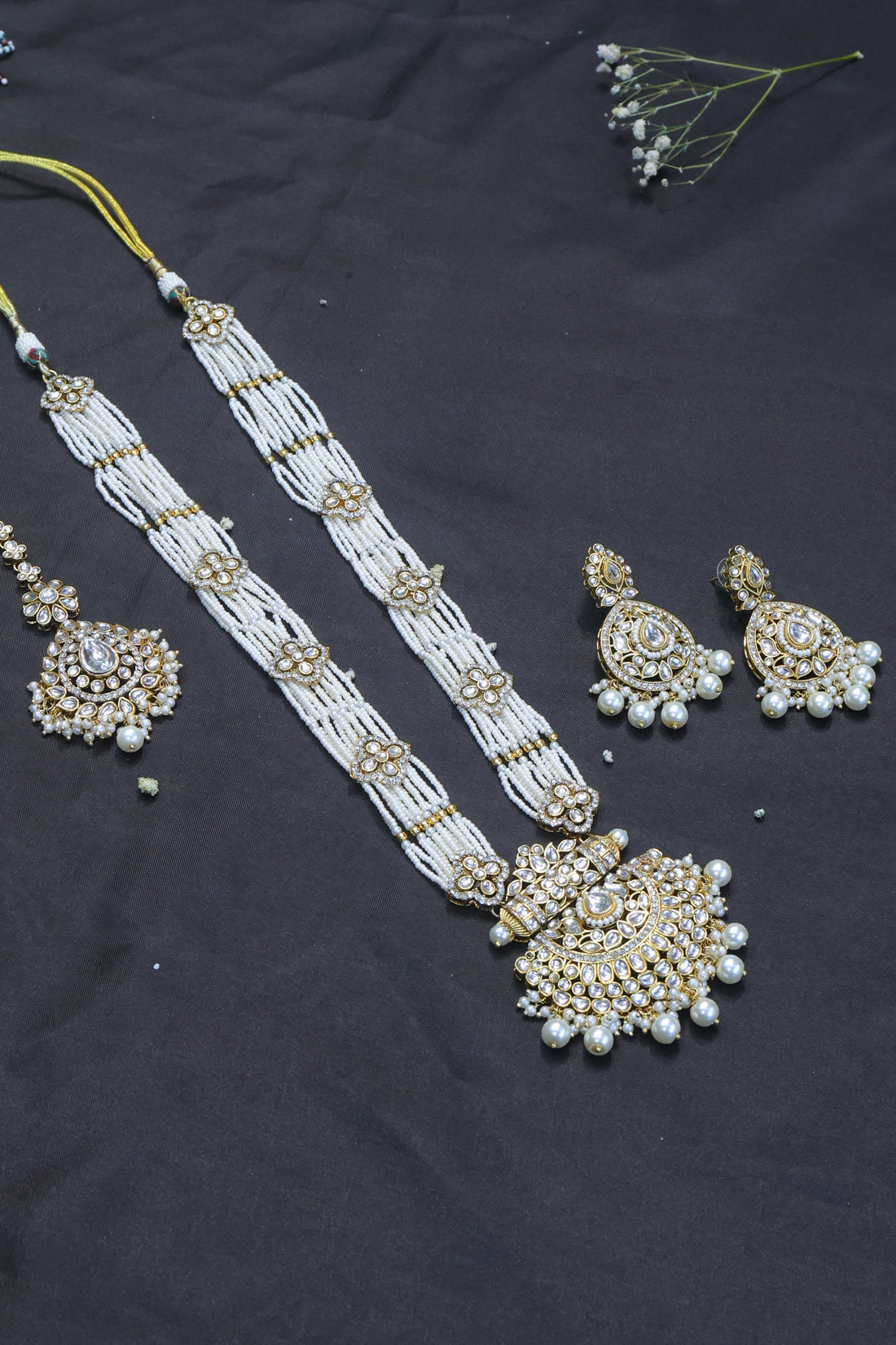 Jodha – Antique Pearl Layered Necklace Set with Royal Dome Earrings