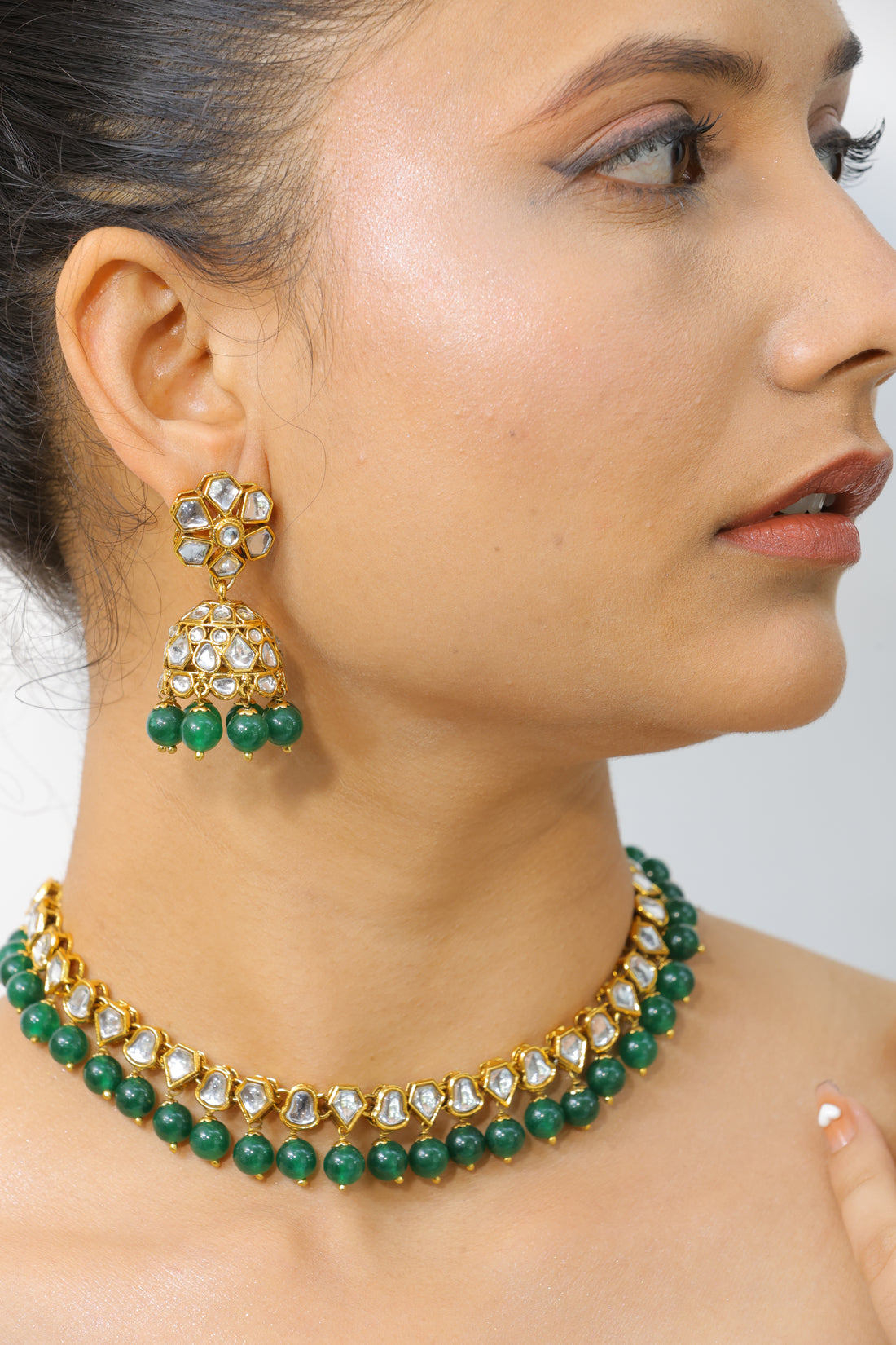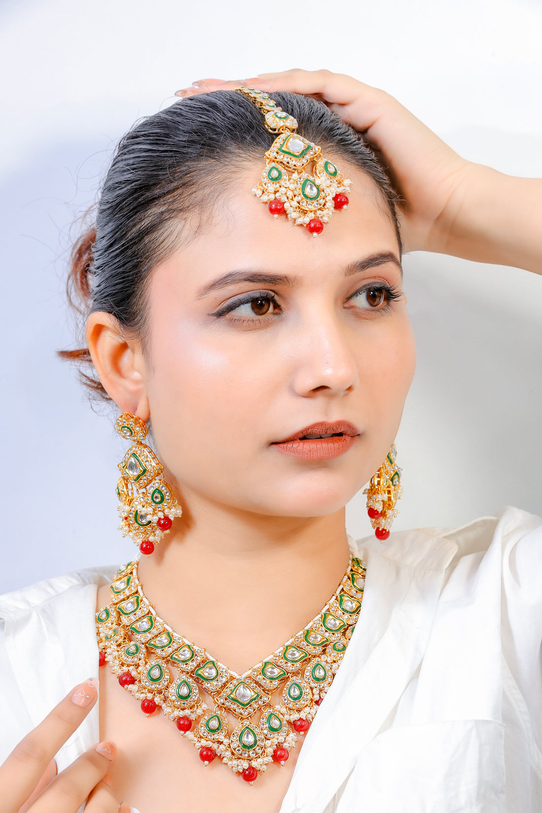 Heeraya – Emerald Kundan Bridal Set with Red Bead Drops
