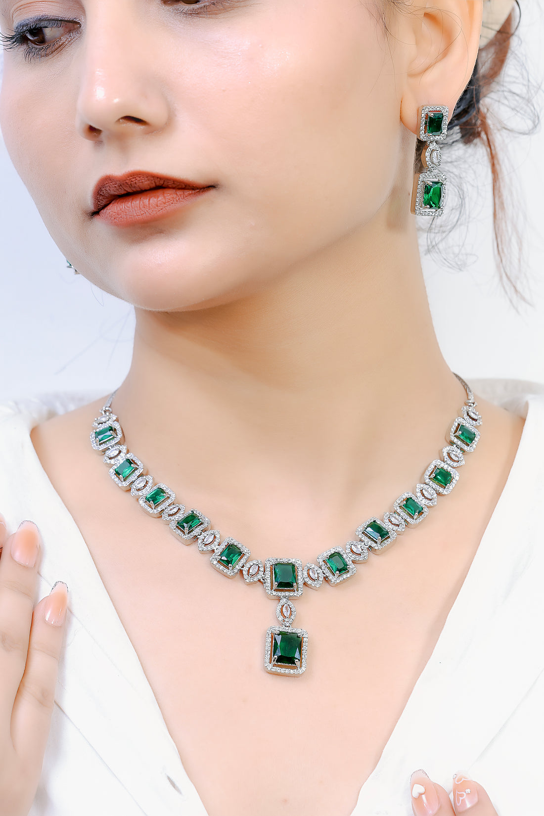 Step into elegance with the Jovie Set — a bold union of deep green emerald-cut...