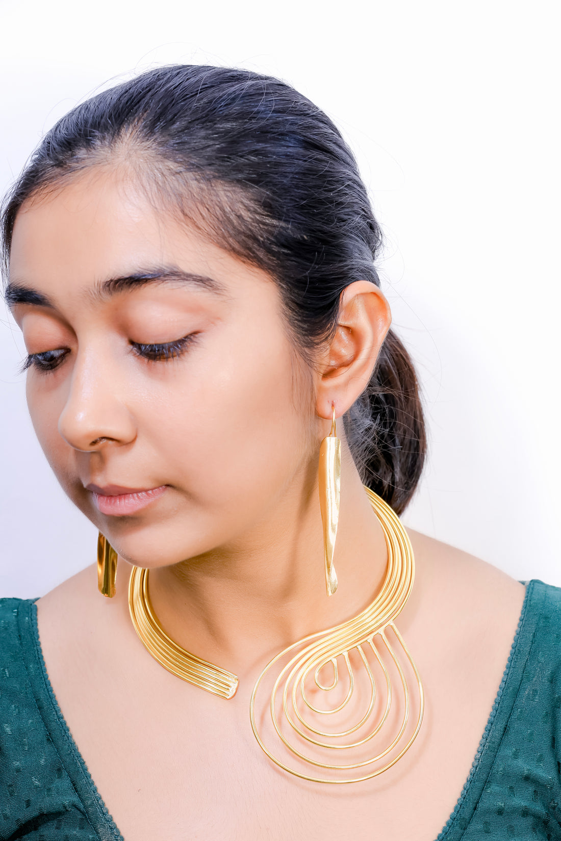 Modern art meets timeless gold in the Nehel Sculpted Spiral Neckpiece Set. This striking statement...