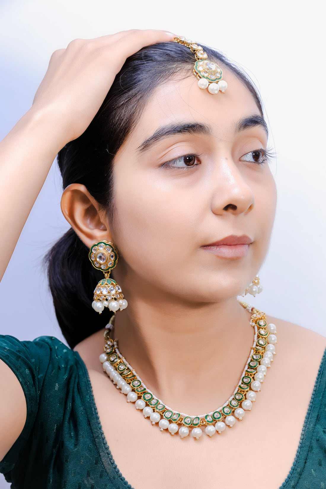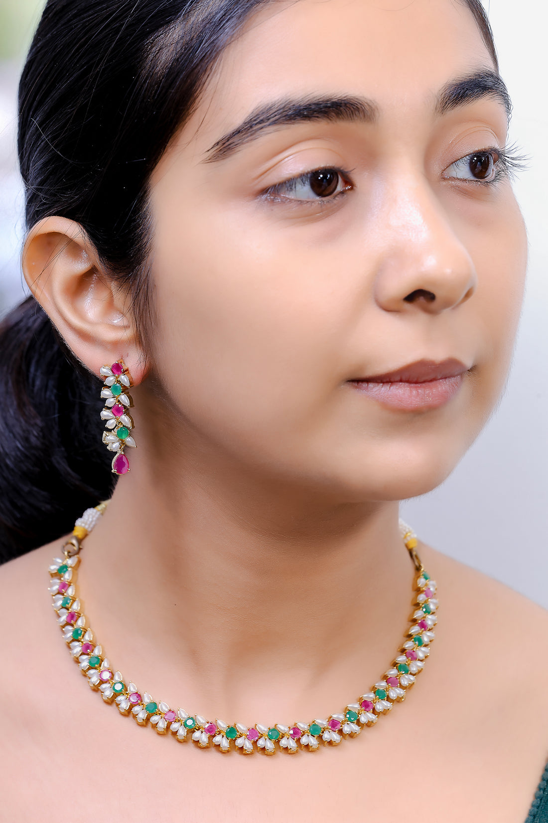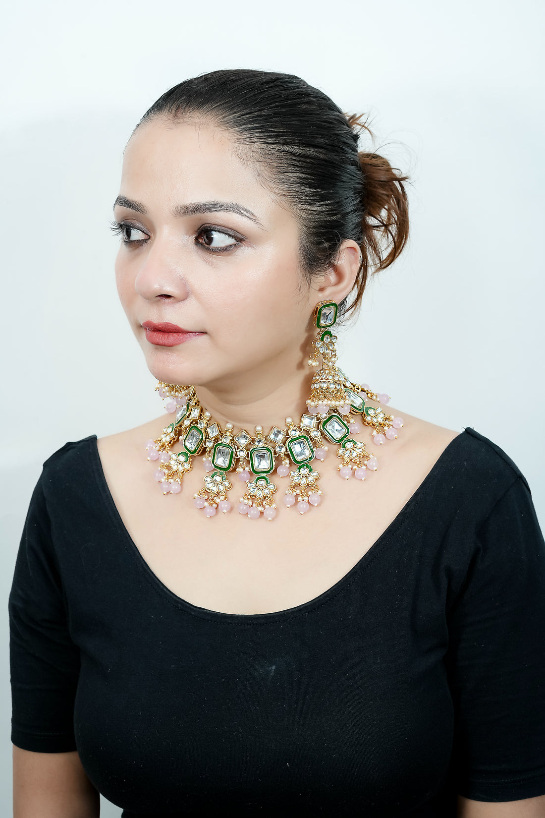 Rajnita Kundan & Emerald Choker Set with Earrings
