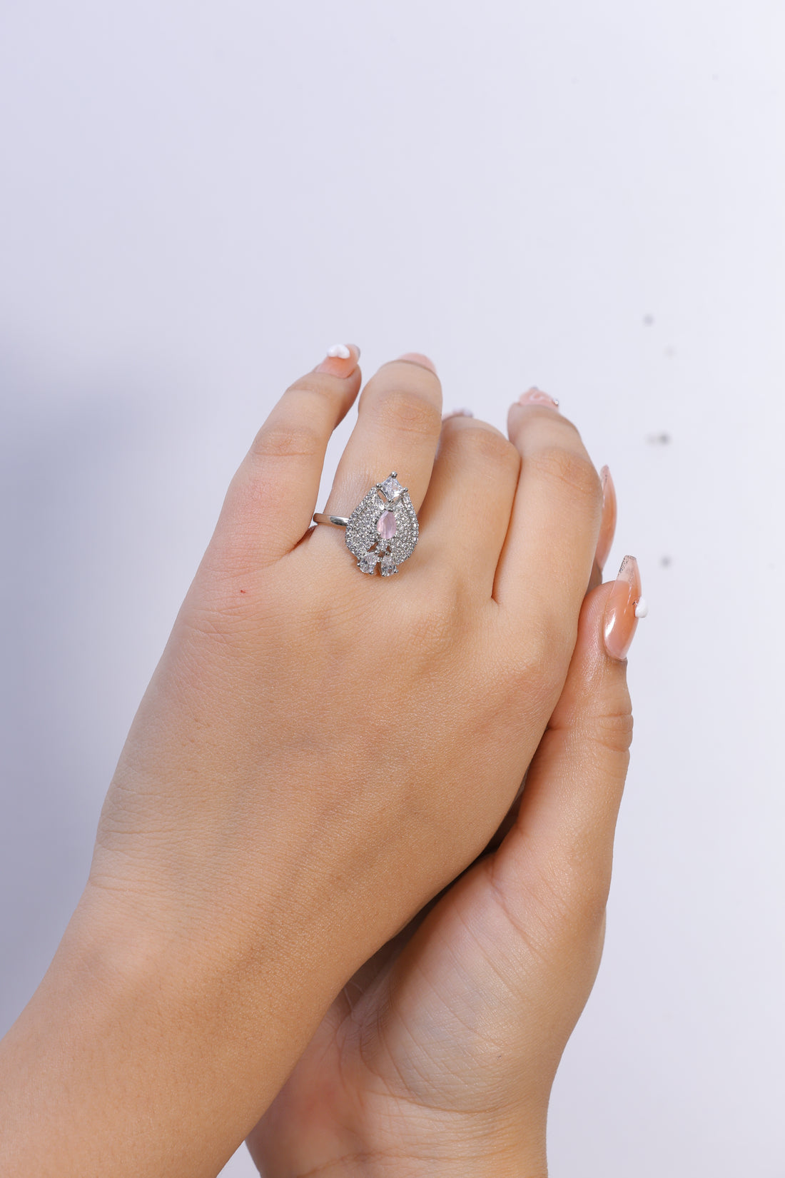 The Prism Ring is a delicate dance of shimmer and shape. Featuring a blush-toned centerpiece...