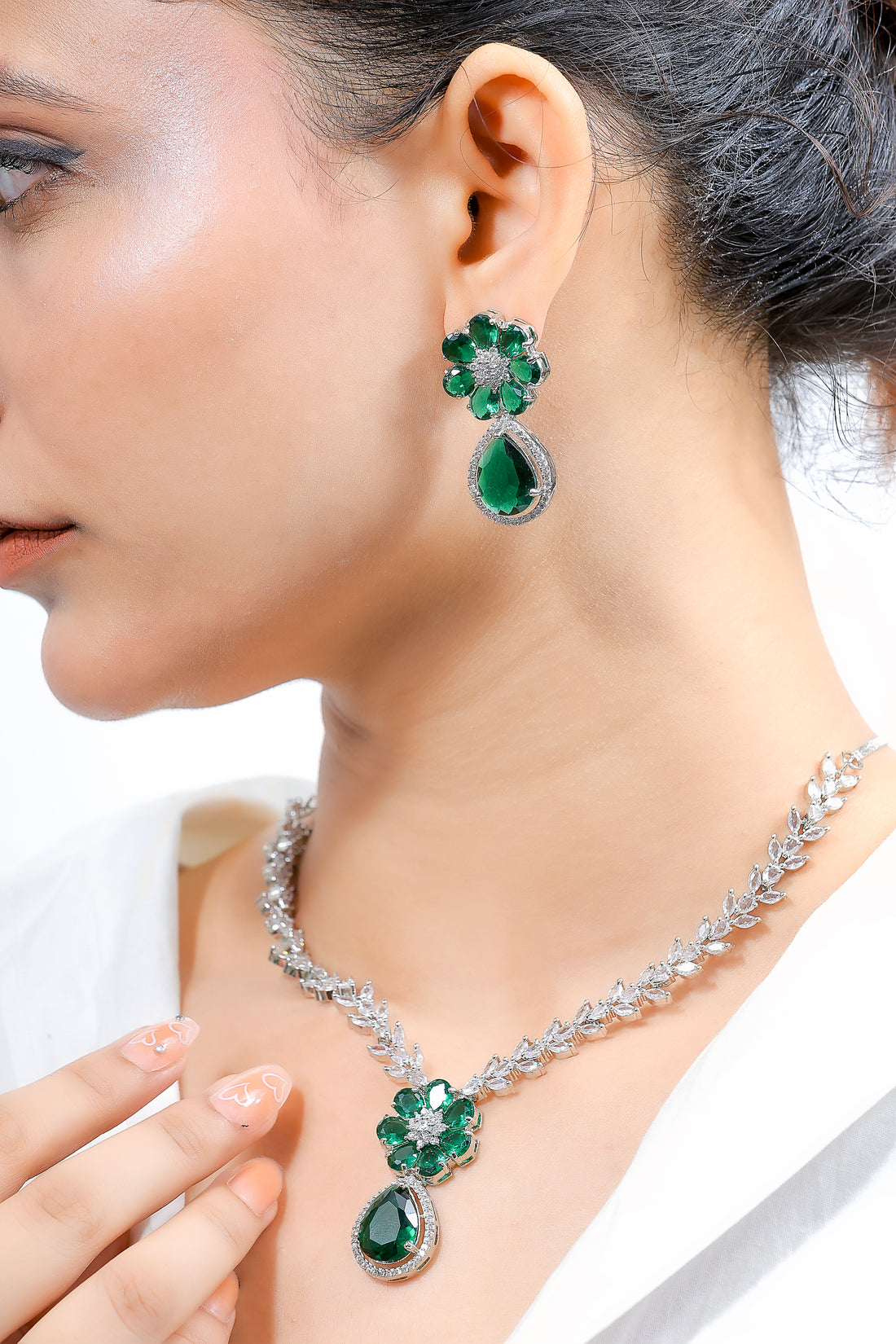 Say it with emeralds.The Florvina Set blends regal charm with floral finesse—featuring a blooming green...