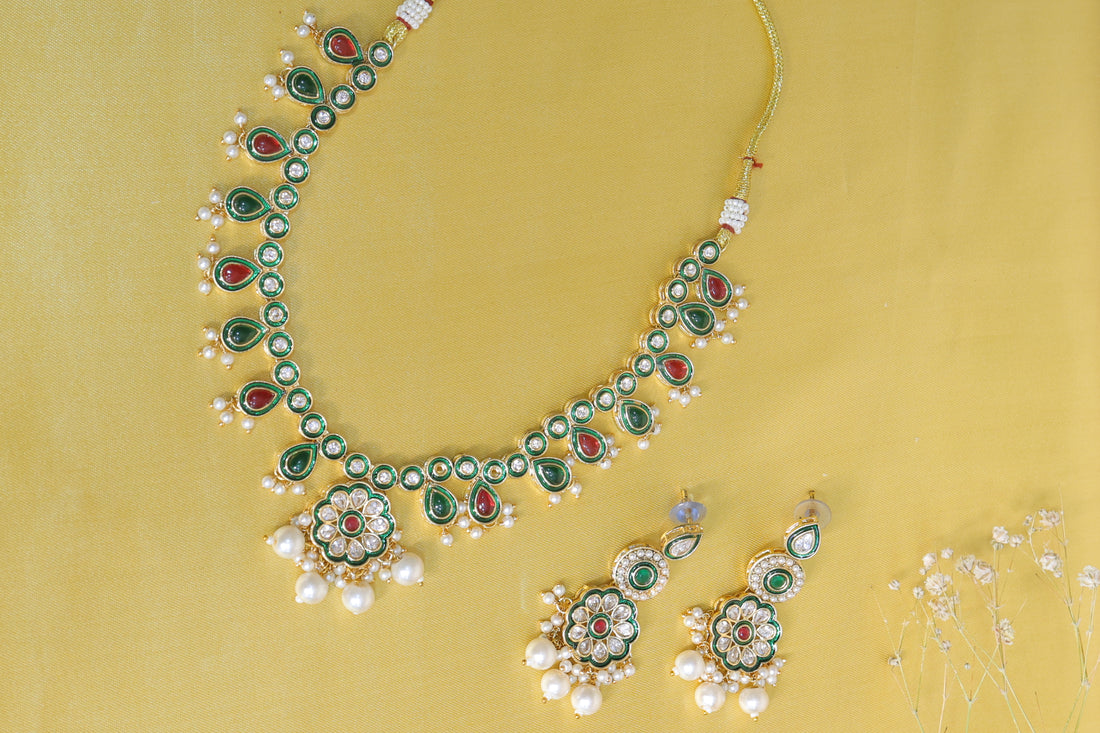 Nehrika– Emerald Meenakari Pearl Choker Set