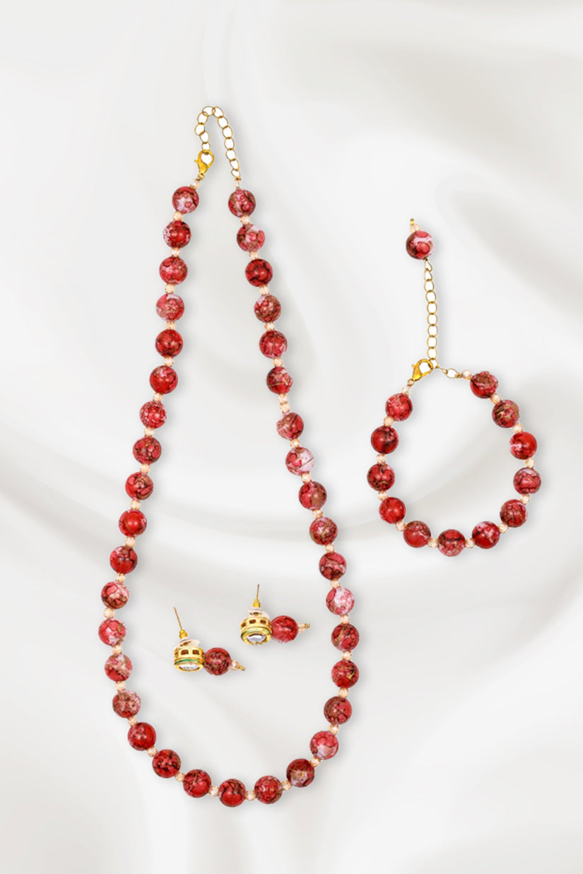 Glitzia – Crimson Marbled Beaded Jewelry Set