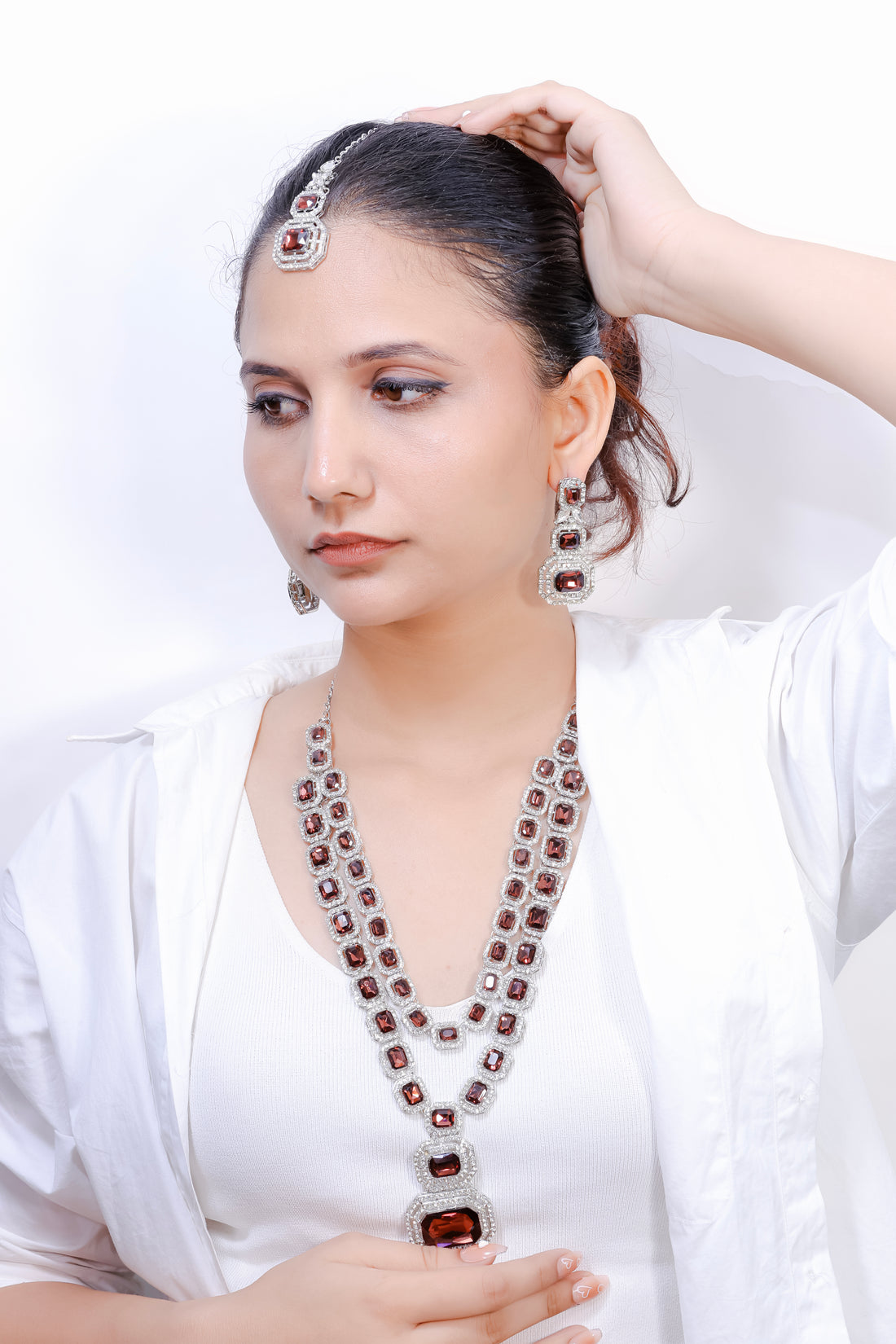 Channel bold sophistication with the Lumyaar – Maroon Stone Royalty Set, a head-turning ensemble crafted...