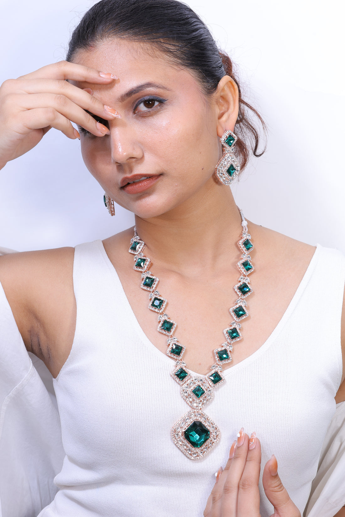 Parinika – Emerald Radiance Necklace & Earring Set