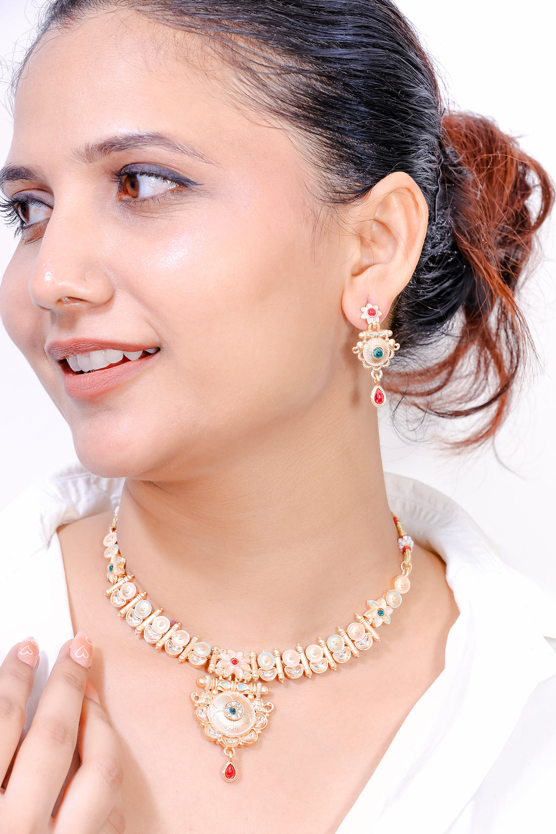 Kumudam – Heritage Meenakari Necklace & Jhumka Set