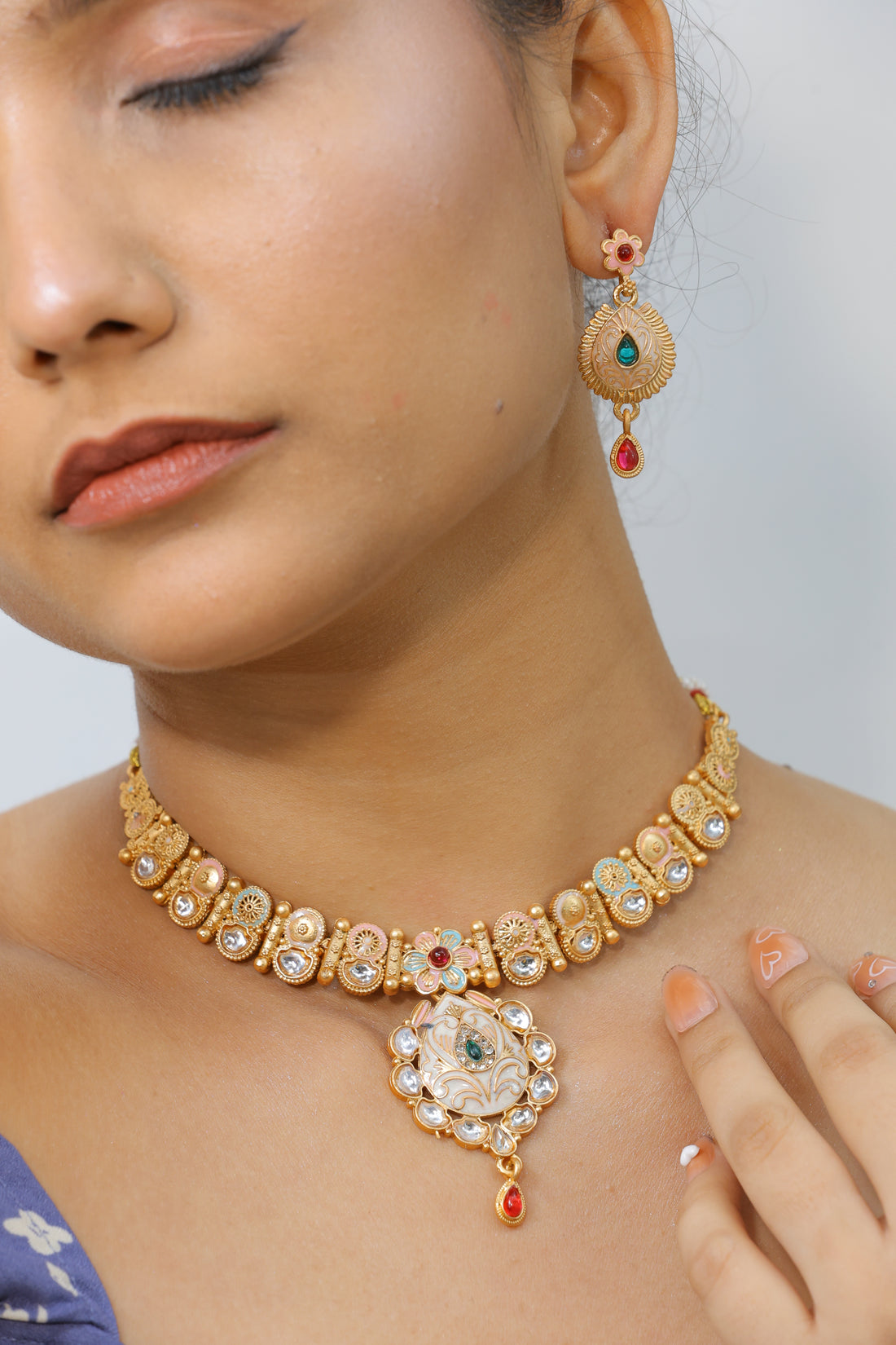 Manorama – Handcrafted Gold-Toned Kundan Choker Set