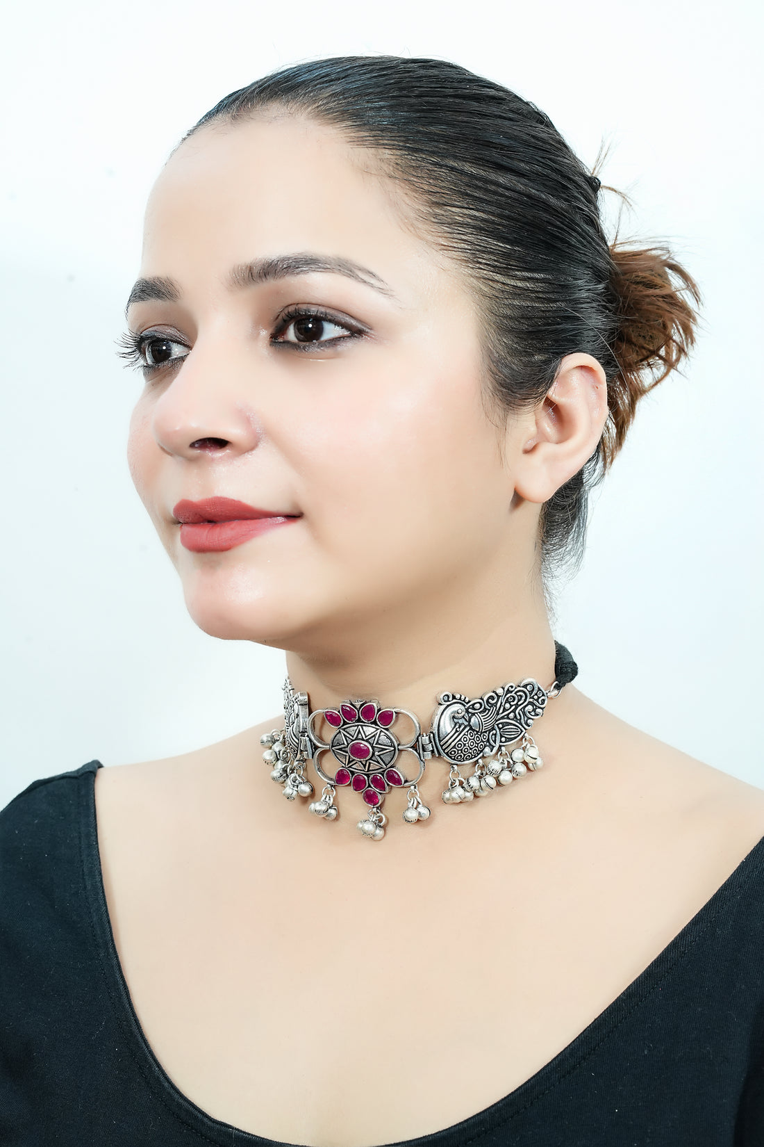 Mehfil Muse Oxidised Choker – Ruby Edition