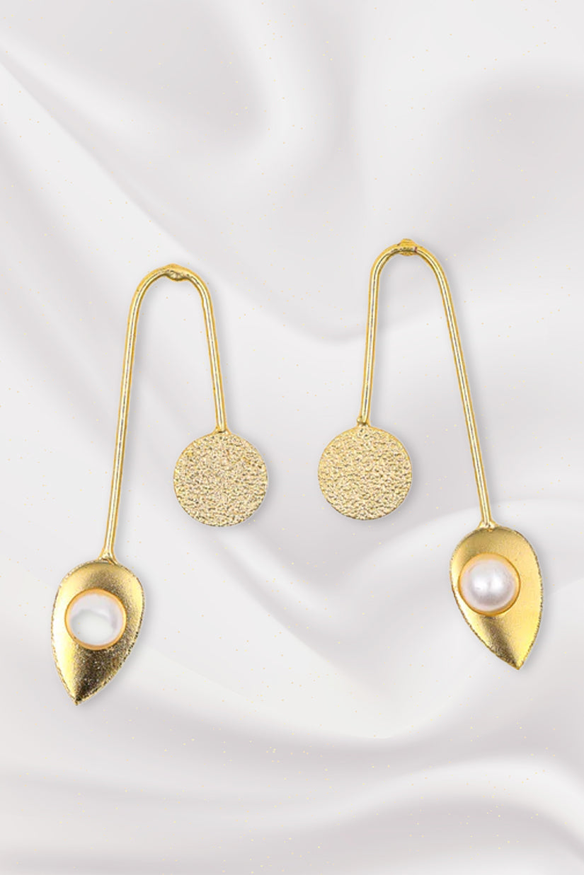 Gilded Tear Drop Earrings – Modern Elegance with Pearl Accent"