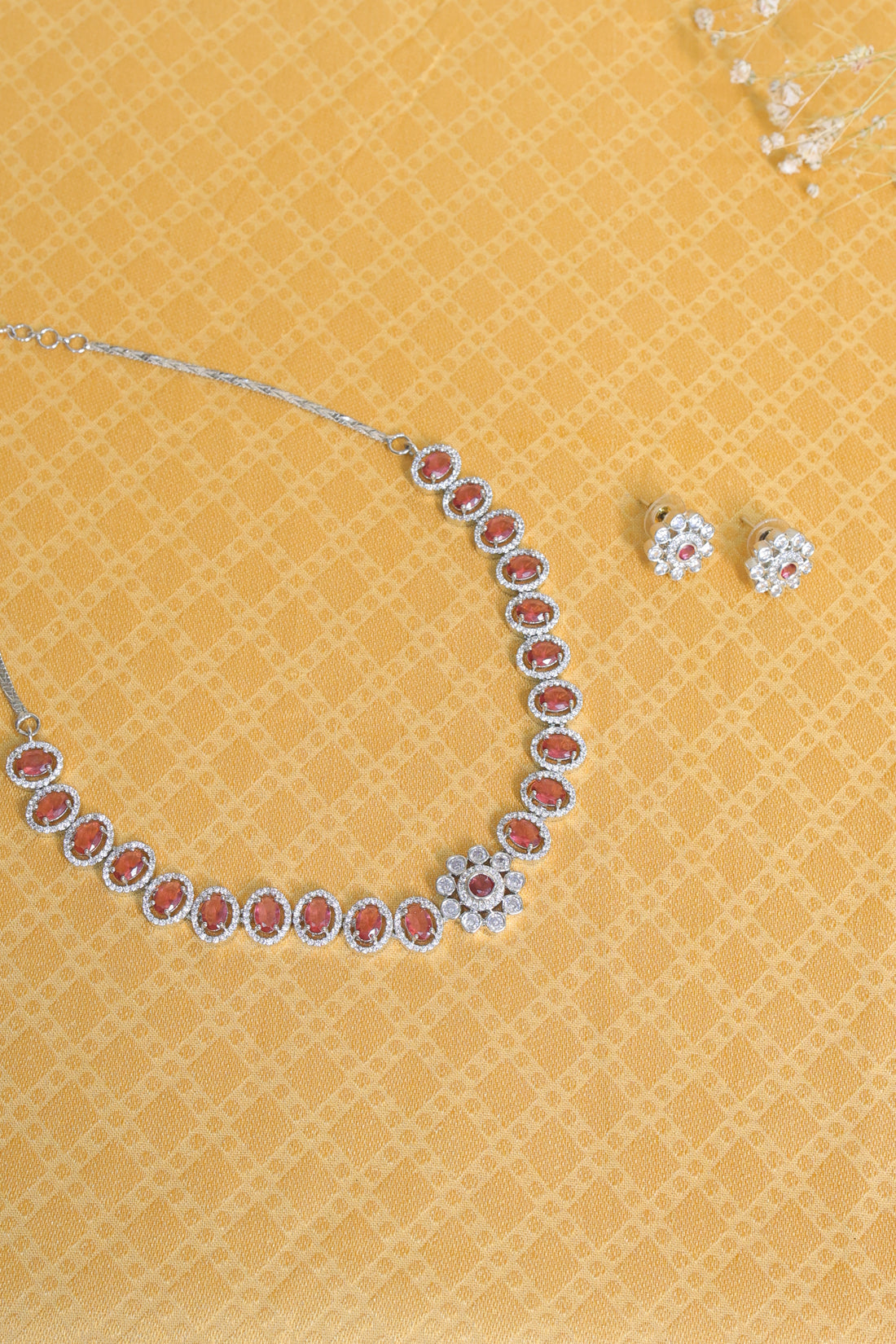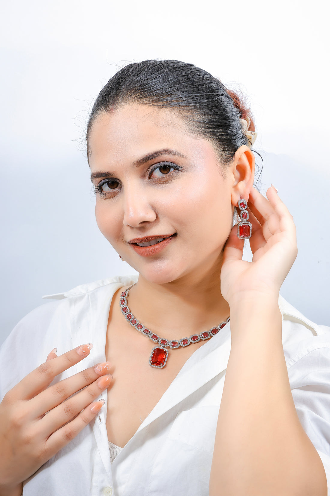 Bold. Fiery. Unforgettable.The Dewdrop Scarlet Shine Set commands attention with its deep red stones framed...