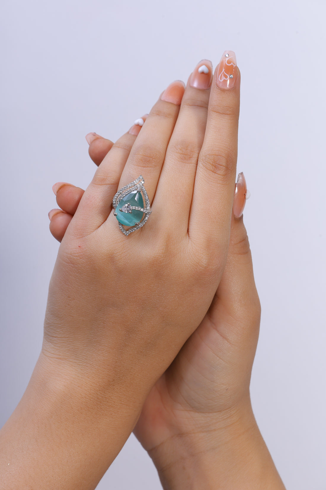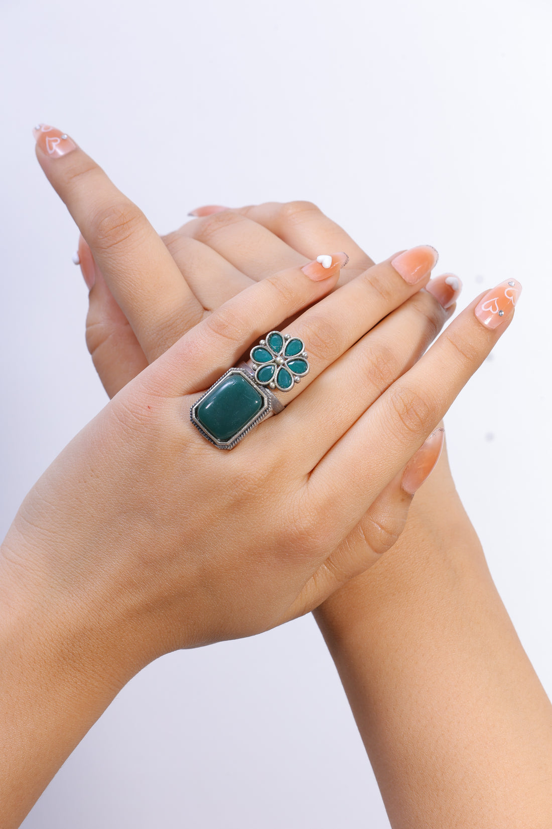 Eloria Ring – Dual Design Oxidised Ring with Teal Stones