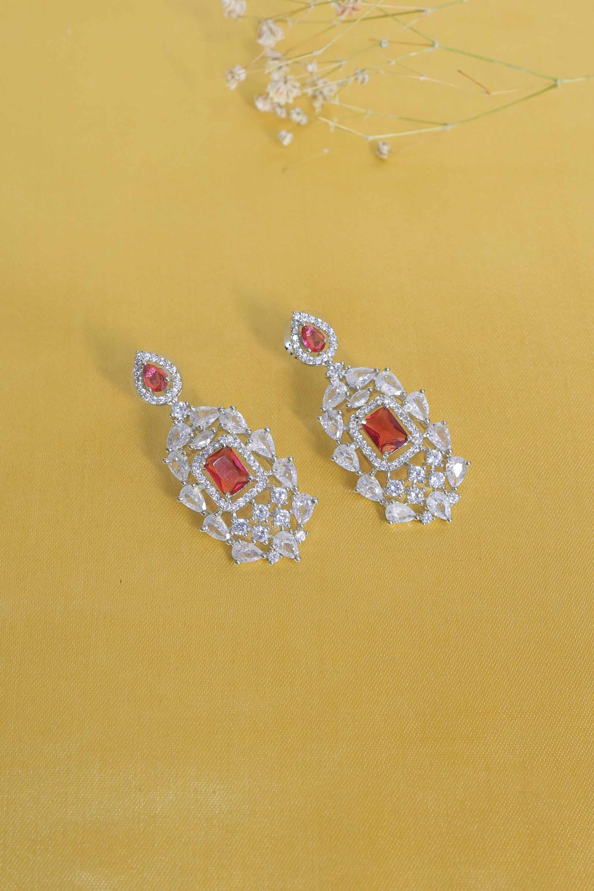 Vibrant ruby-hued stones with shimmering CZ highlights