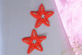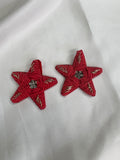 Handcrafted Red Star Beaded Earrings with Rhinestone Center