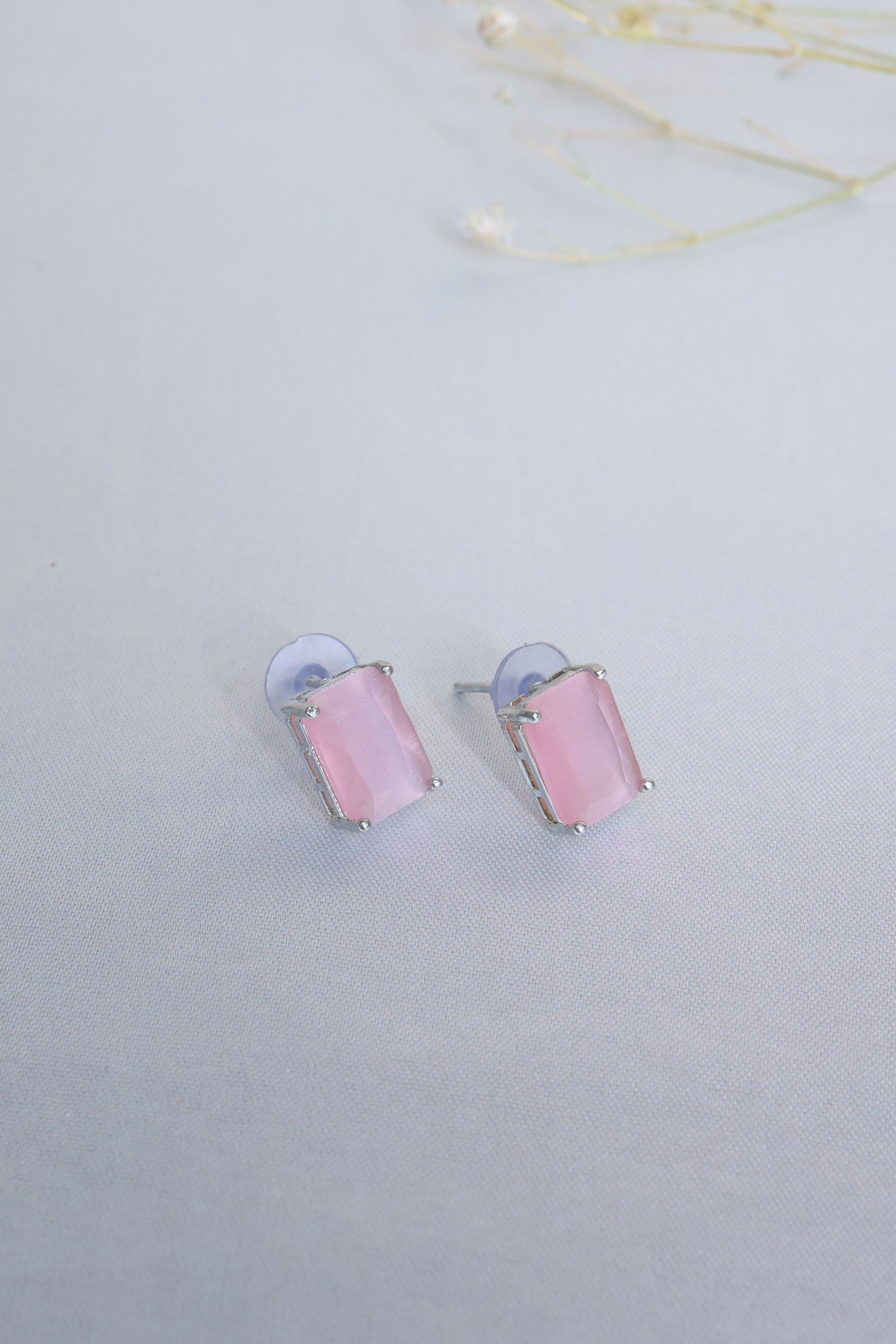 💗 Blush Pink Stone Design – Elegant emerald-cut stones with a soft shine