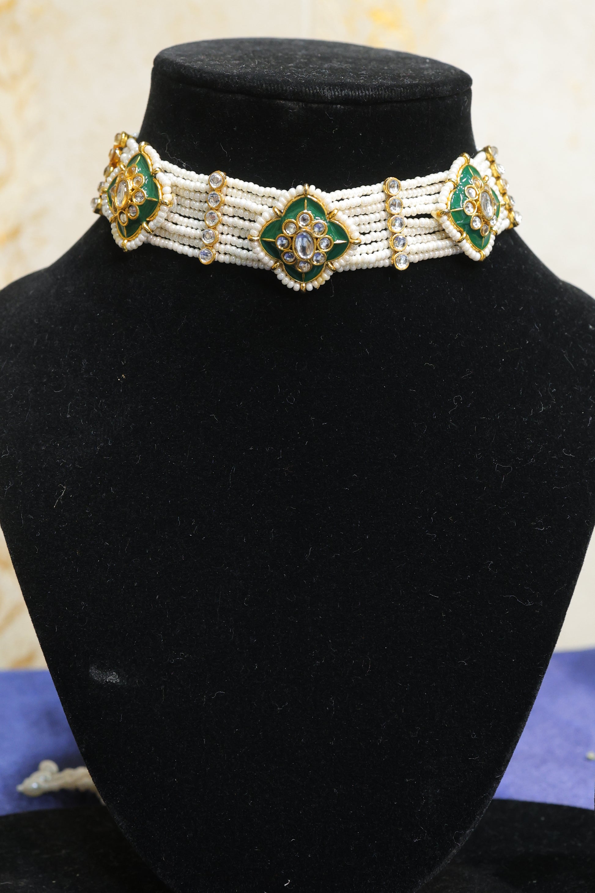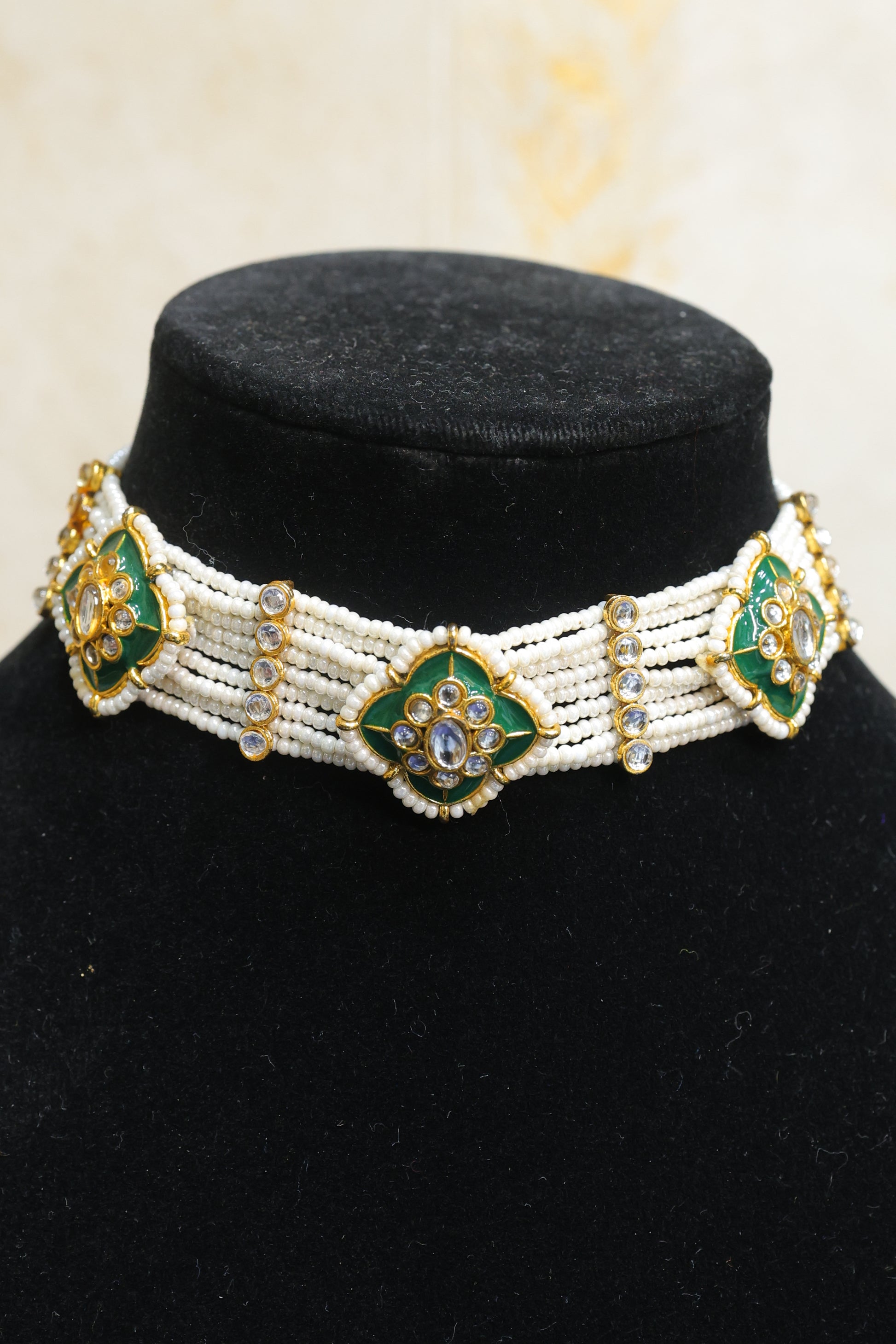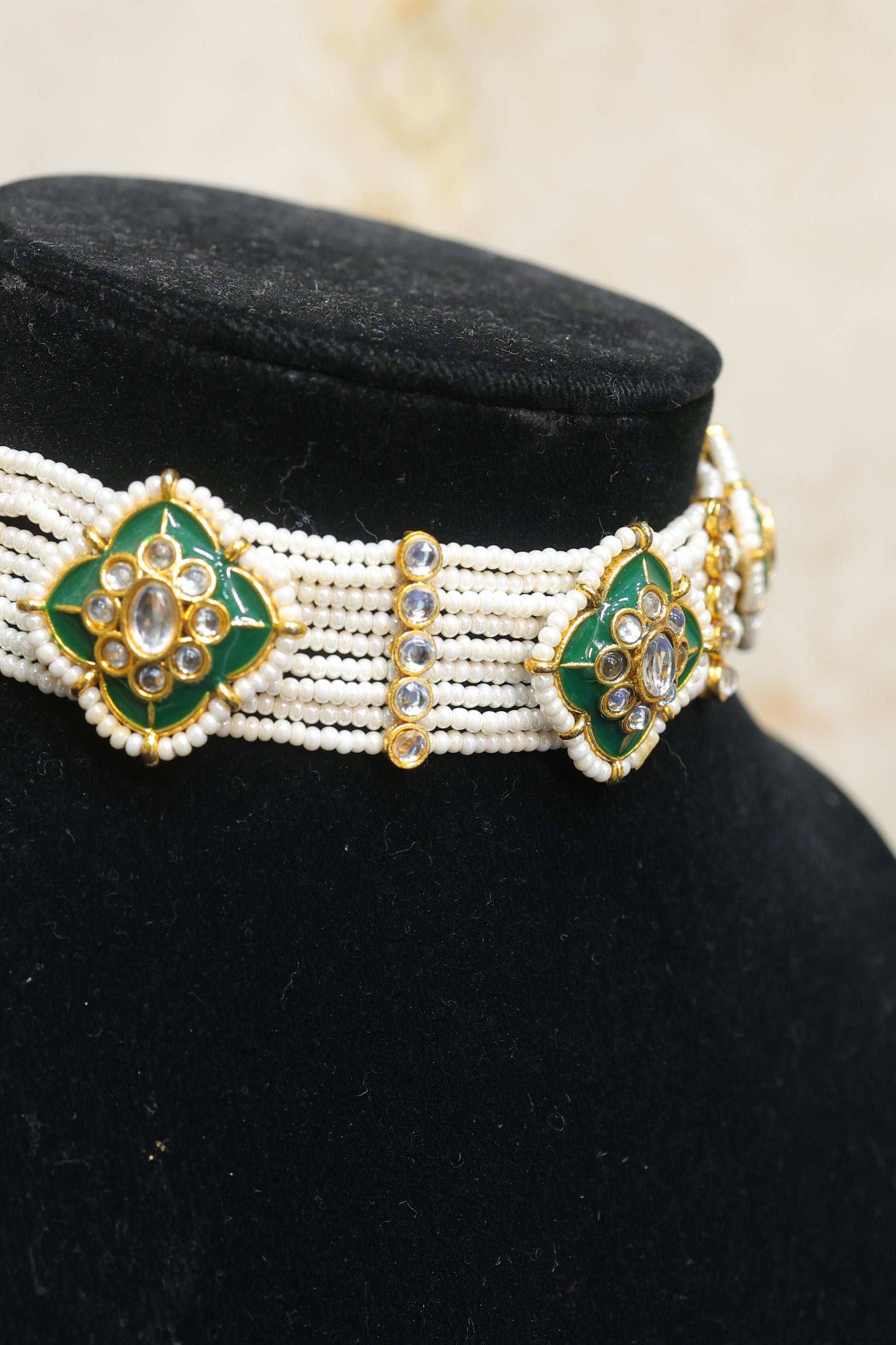 Nehrika– Emerald Meenakari Pearl Choker Set